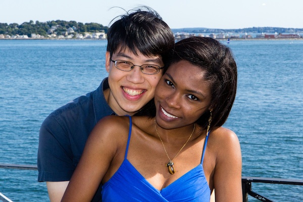 Myjanou and James met at Boston College in the spring semester of 2007. James was in charge of a weekly film screening for Myjanou's Contemporary Asian Cinema class. Ever the diligent student, Myjanou did not miss a single screening. They started going out in April 2008.